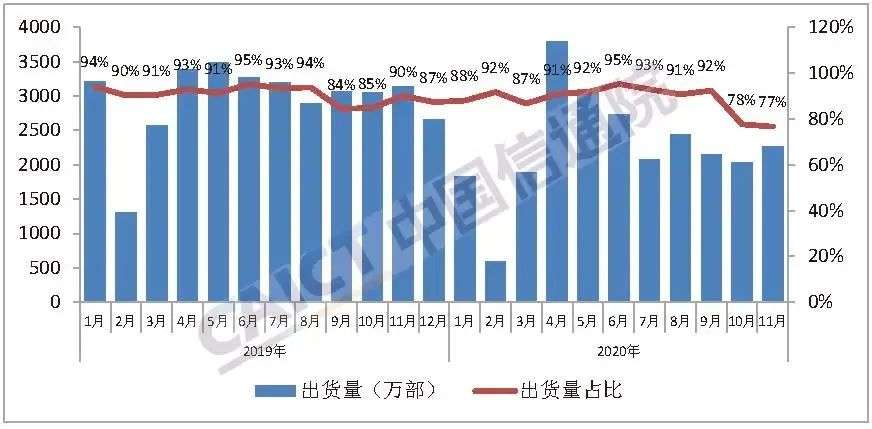 而数据也支持了这一点,根据中国信通院的统计,10月和11月的国产机型销量并没有维持在往常的85%,而是直接跌破80%,为2017年来的第一次。考虑到国外品牌在大陆的弱势,有能力影响国内手机销量占比的只有苹果,足以窥见iPhone 12系列(加上Pro Max和mini)的热度有多高。