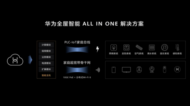 华为此次发布的方案名为“全屋智能 ALL IN ONE 解决方案”,包含 1 个主机、2 张网络和 N 个硬件,网络与设备可以协同,从而不仅实现对于设备的控制,也能实现对于声光水电等系统的互联与协同。据华为介绍,未来智慧家庭的四类关键要素是:1 个运营门户,3 类核心产品,4 项基础能力和 5 大场景。
