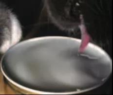 下面几张图展示的是高速摄影机拍下的猫舔水过程: