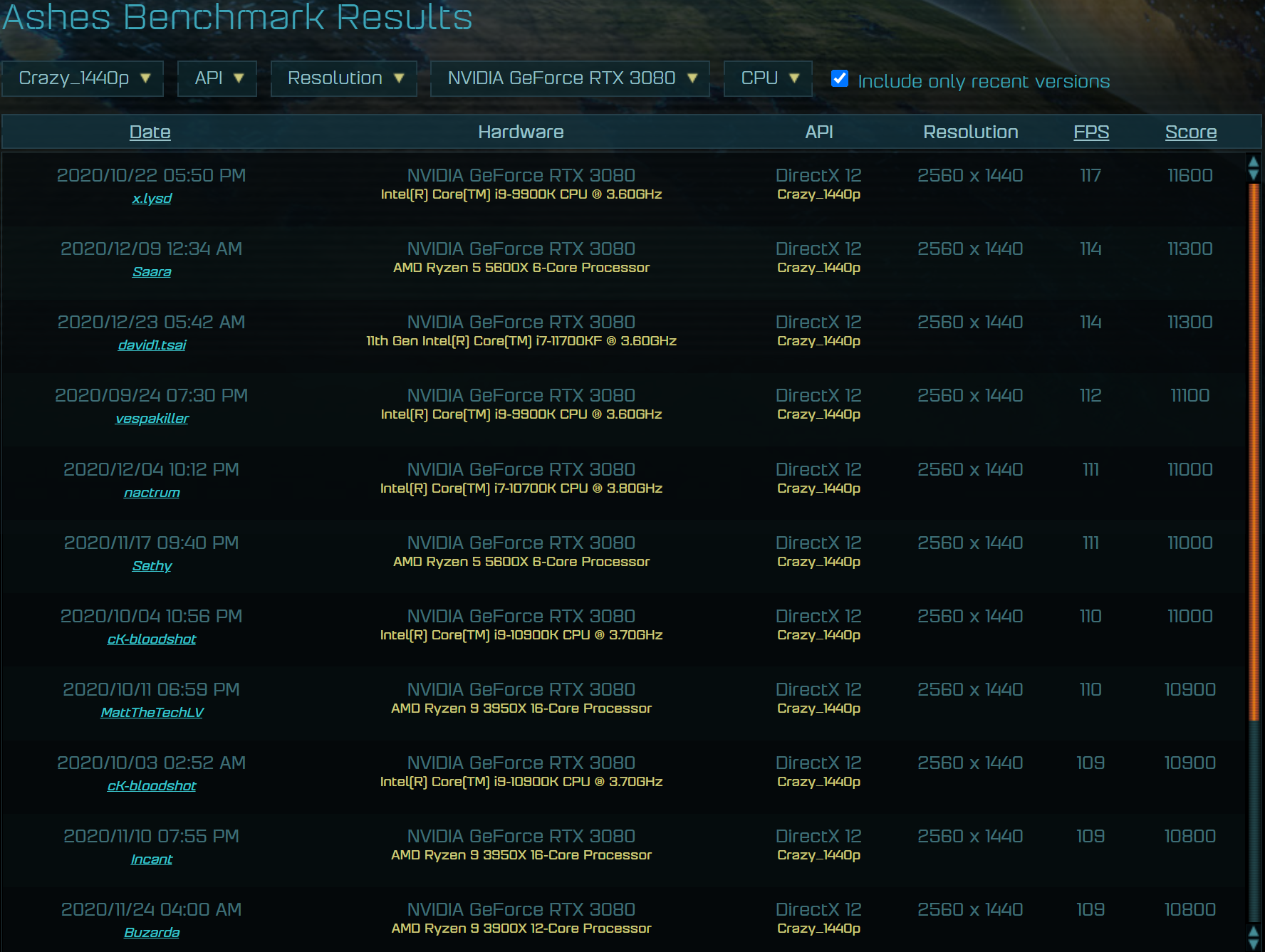外媒猜测上述芯片为英特尔向主板和 OEM 集成商提供的早期测试样品,在搭配英伟达 RTX 3080 独显和 64GB DDR4 内存的情况下,其《奇点灰烬》游戏基准测试成绩为 11300 。