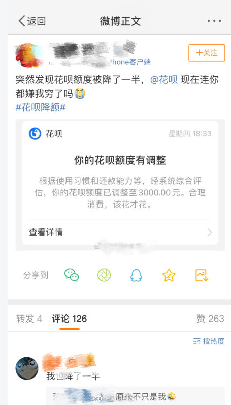 近日,有不少网友在社交平台发帖,称自己的花呗额度有所下降,不少网友的额度被降到3000元以下。小范围调查发现,被降额的大多是年轻网友。蚂蚁集团也证实,近期正在调整部分年轻用户的额度,倡导更理性的消费习惯。你的花呗额度够用吗?