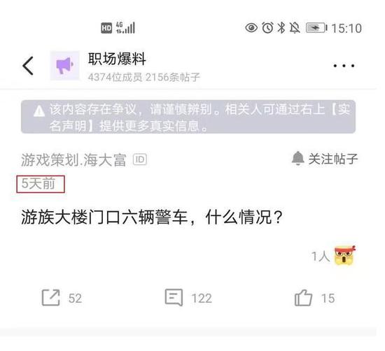 然而在匿名公司社交平台脉脉上,18日有人透露,游族公司大楼门口出现了六辆警车。按常理来说如果一家公司一切正常的话,是不会有这么多警察同时上门的。