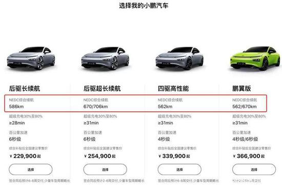 小鹏P7官方显示的续航参数,图源:小鹏汽车官网