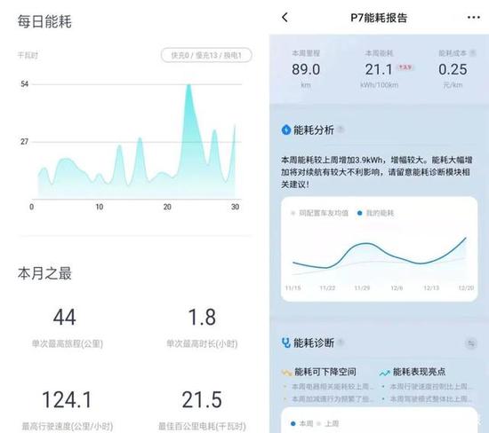 小鹏P7随着跑的时间增长,能耗会逐渐降低 图源:采访对象