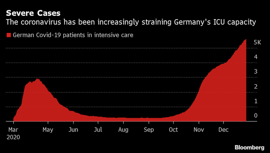 自新冠疫情爆发以来,德国单日新冠死亡人数首次超过1000,突显出欧洲领导人遏制病毒传播和推出疫苗的紧迫性。根据约翰·霍普金斯大学的数据,截至周三上午的24小时新增死亡1122人, 随着死亡人数的增加,德国重症监护病房的新冠患者人数稳步上升,提醒人们医疗保健系统可能负担沉重。