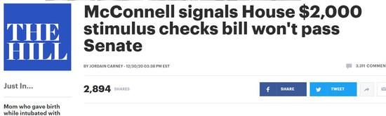 (《国会山报》:麦康奈尔暗示2000美元纾困案不会在参议院获得通过)