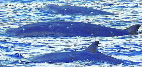 第一,由于头部和张口形状以及体色存在差异,银杏齿中喙鲸或德氏中喙鲸个体可以很容易地与其他喙鲸种类区分,从外形和肤色来看,目击到的喙鲸应该是银杏齿中喙鲸或德氏中喙鲸;第二,尽管在本次研究中收集到的照片数据质量相对较高,但由于物种之间体色模式和疤痕模式的高度相似性,因此无法对活体银杏齿中喙鲸或德氏中喙鲸进行准确分类;第三,初步收集到的潜水和浮出水面行为的数据与在其他喙鲸中观察到的数据相似,这表明银杏齿中喙鲸或德氏中喙鲸的遇见概率和可接近性可能与其他喙鲸类似;第四,未来的研究应该证实在银杏齿中喙鲸或德氏中喙鲸标本中的唇线凹痕是否正常存在,事实上,唇线凹痕有可能是渔具或海洋垃圾造成的。