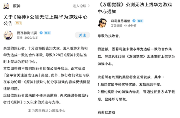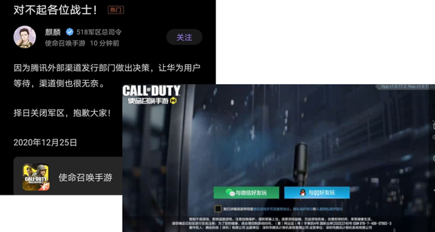 需要注意的是,仅从两份公告看来,腾讯与华为的确存在合作细节上的不一致,但双方并未透露具体的原因。按照华为与腾讯过往的合作来看,在此次下架时间前,双方已经产生过个别矛盾。2020年12月底,腾讯《CODM》在华为游戏中心延迟上架,并出现开启下载后也无法使用华为账号登录等问题。