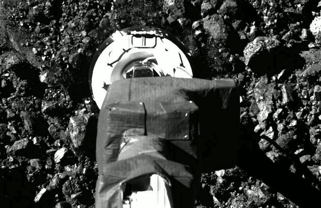 为了采集小行星样本,Osiris-Rex采用一个末端带有环状收集腔的长杆结构,飞船降落到贝努小行星表面,当长杆接触小行星表面时,会喷射氮气,喷射出来的氮气会搅动贝努小行星表面,使小行星碎片样本溅入收集腔。