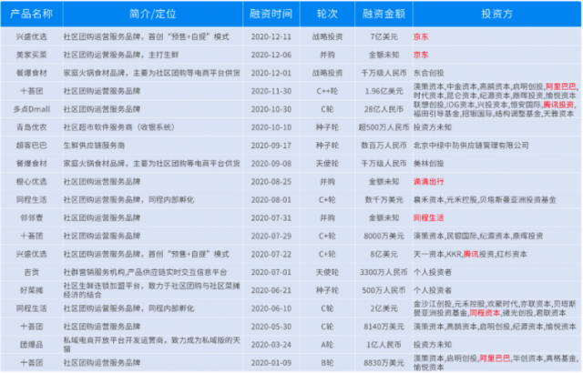 据TechWeb不完全统计,截至目前,阿里、腾讯、京东、美团、滴滴以及拼多多等都已经入局。7月7日,美团宣布成立“优选事业部”,美团优选App在应用商店内正式上线;8月20日,“多多买菜”在武汉开团;阿里、腾讯以及京东更多的是以投资的角色加入战场。其中,腾讯投资了兴盛优选的A+轮和C轮;京东投资了兴盛优选7亿美元,还花费了2亿美元并购了美家买菜;阿里则是投资了十荟团的B轮以及C++轮。