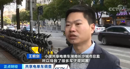小遛共享电单车湖南长沙城市总监 王能剑:一些企业是超于比如说2019年两倍、三倍,甚至四倍的量在长沙进行投放,所以车辆多了就饱和了,导致很多车子闲置,另外在管理不到位的情况之下,有很多车辆就会堆积,甚至占用机动车道、占用人行车道。