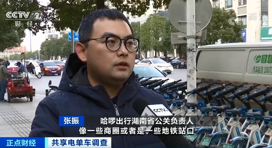 哈啰出行湖南省公关负责人 张振:比如抢占热点,像一些商圈或者是一些地铁站口,就会有很多品牌去抢这个地方,一旦车辆过多,对企业来说是资源的浪费。所以我们从2020年就开始主动减量。
