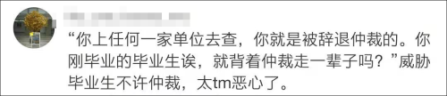 该工作人员还强调道:“你上任何一家单位,人家一查,你就是被辞退的,被仲裁的。你刚刚毕业的毕业生,现在就背着仲裁,就这样走一辈子吗?”