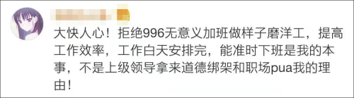 “崇尚奋斗,不等于强制加班;反对996,不等于‘混日子’。”