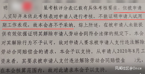 上海市青浦区仲裁委员会出具的裁决书上也明确写道:该考核表不能证明申请人试用期工作表现,不予采纳。