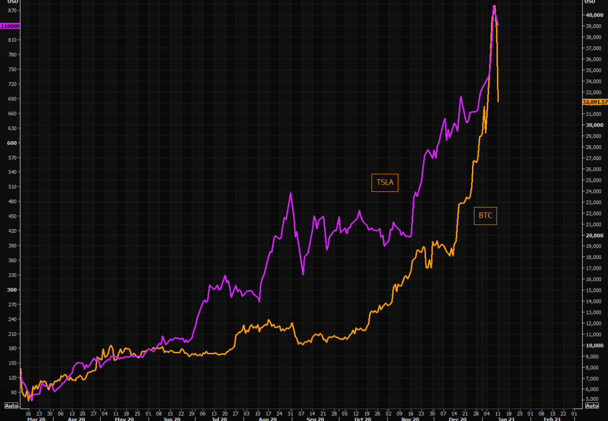 此外,持有上述两种资产的投资者当中,散户占了很大一部分比例。其中,比特币本来就是靠散户起家,特斯拉也作为很多基金的权重股而被散户持有。