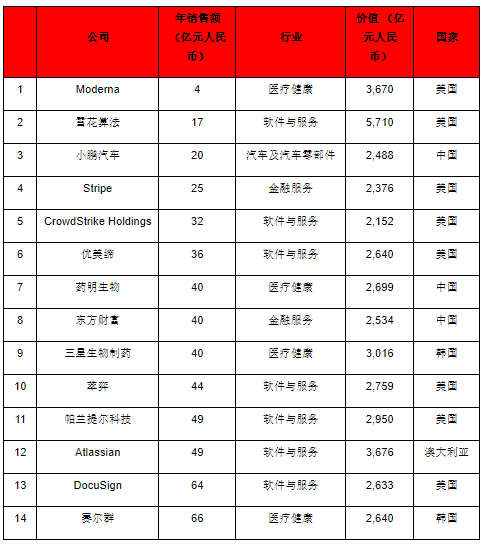 美国主要新冠疫苗研发公司Moderna是“胡润世界500强”中年销售额最低的公司,仅4亿元人民币,却创造了3670亿元的价值。