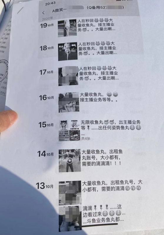 朱先生称,自己在直播间多次参与“鱼丸预言”活动后,加了部分主播微信,“一般都聊如何下注。”主播有时候会问“为什么几天没有来了。”输多了“也会安慰你,下次翻本。”朱先生说,熟悉的主播会向他推荐鱼丸卖家。朱先生通过这些鱼丸卖家来购买鱼丸,对方“赚取一定的差价。”
