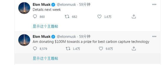 特斯拉CEO埃隆-马斯克周四表示,他计划捐赠1亿美元,以奖励最佳碳捕捉技术的开发。马斯克在推特上宣布了这一消息,并表示细节将于下周公布。在超越亚马逊CEO贝佐斯成为全球首富之后,马斯克最初的反应只是耸耸肩,“回去工作吧”。现在他正征求如何把钱捐出去的建议。