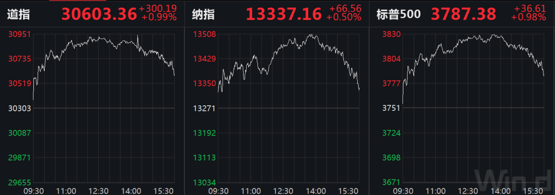 当地时间1月28日,美国三大股指集体收涨。道指涨逾300点,纳指涨0.5%,标普500指数涨0.98%。