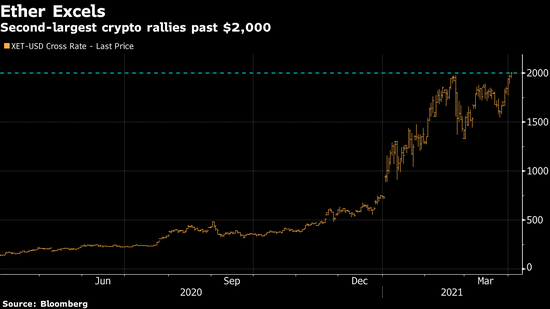 全球第二大加密货币的以太币创下了历史新高,数字资产的涨势不断扩散到比特币以外。以太坊的这个数字货币周五上涨了6.2%,周六一度升至2144美元的高点。它今年几乎上涨了两倍,并在2月份首度于盘中突破了2000美元。