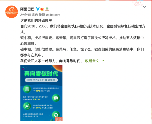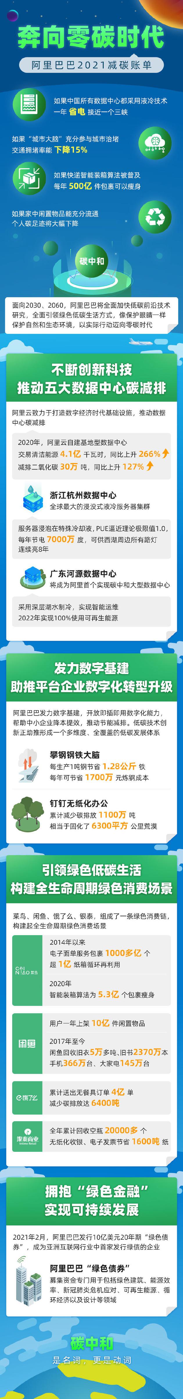 4月29日上午消息,阿里巴巴官方微博今日发文表示,面向2030、2060,阿里将全面加快低碳前沿技术研究,全面引领绿色低碳生活方式。其在微博中同步晒出2021年减碳账单。