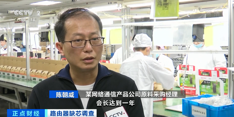 某网络通信产品公司原料采购经理陈朝威:芯片整个交期都延长了,有的芯片跟材料的交期会长达到一年,甚至以上。