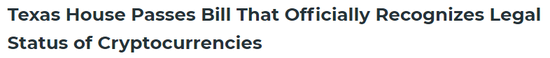 据U.Today周二(5月11日)最新报道,德克萨斯州众议院刚刚通过了“虚拟货币法案”,该法案承认加密货币的法律地位。在成为法律之前,其必须在参议院清除障碍,并有可能与怀俄明州一起成为主要的加密货币中心。
