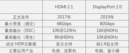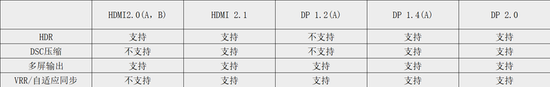 例如在对可变刷新率(VRR)的支持上,HDMI要到HDMI2.1此加入了对于VRR的支持,而在DisplayPort(DP)标准上,早在DP 1.2、DP1.4版本时就实现了对于VRR的支持。