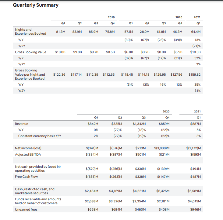 疫苗接种加速、以及一些地区旅行限制的解除,去年在疫情中深受打击的美国旅游业也正在迎来复苏。在线短租鼻祖爱彼迎(Airbnb)最新一季财报就证实了这一点。5月13日Airbnb公布2021财年一季度财报显示,尽管城市间和跨境旅游还未完全复苏,但是2021年一季度的业绩表现已经超过了2019年同期水平。