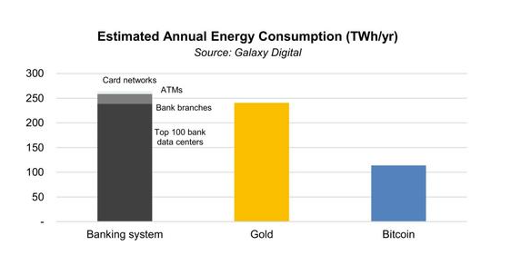 根据银河数据最新提供的报告,比特币能源消耗远低于传统的银行系统和黄金行业。 在过去几天由特斯拉CEO马斯克引发的风波中,围绕加密货币能源使用的讨论非常激烈。然而,由前对冲基金经理Michael Novogratz建立的银河数据公司用数据证明,传统的银行系统和黄金产业实际上比比特币网络消耗更多的能源。