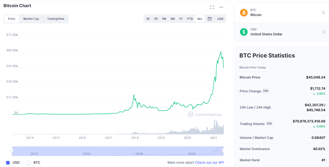 截至本文发稿,据CoinMarketCap显示,比特币报45060.82美元,今日涨3.98%。