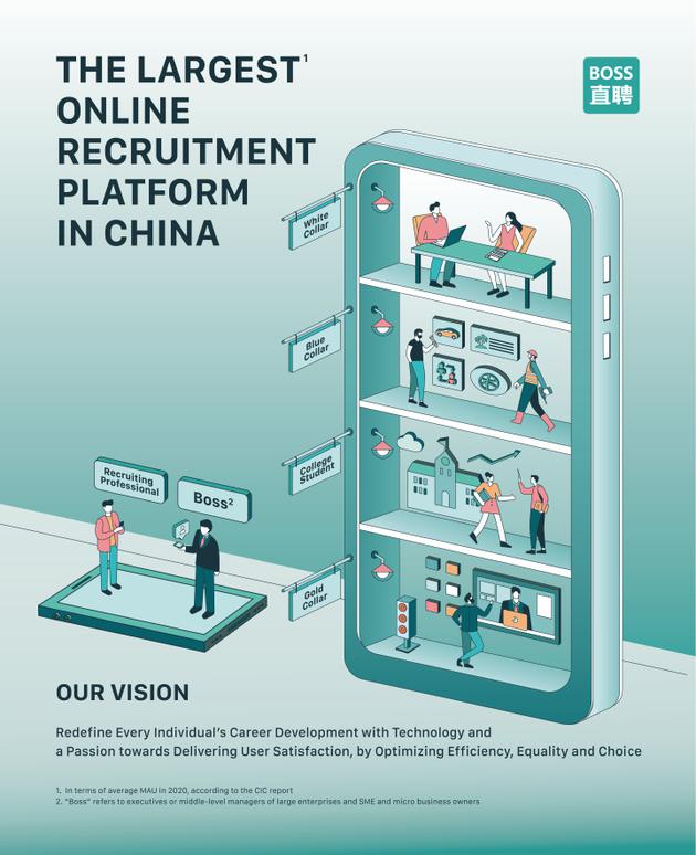 提交至SEC的公开信息显示,截至2021年3月,作为企业端服务,BOSS直聘服务630万家认证企业,其中82.6%为中小企业,也包括《财富》中国500强的所有公司。