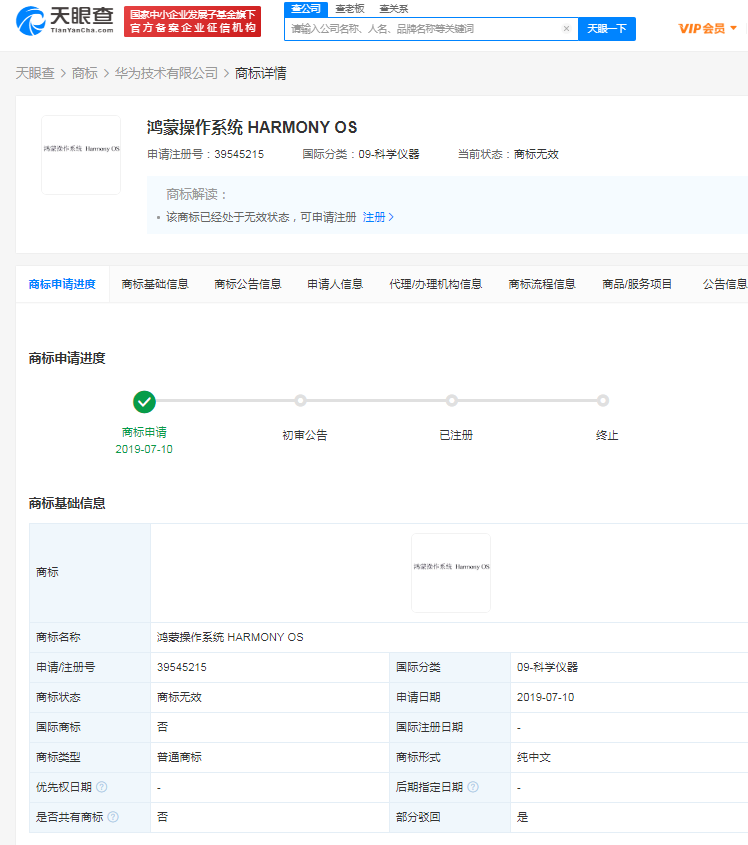 天眼查 App 显示,华为技术有限公司最早于 2018 年 8 月就申请注册“华为鸿蒙 ”“HUAWEI HONGMENG” 等商标,国际分类涉及科学仪器、网站服务,商标已于 2019 年 5 月注册成功。近三年间,华为又陆续申请了“鸿蒙 ”“HARMONY”“ 鸿蒙操作系统”“鸿蒙内核”“鸿蒙 OS” 等多个相关名称商标,涉及国际分类扩展了金融物管、广告销售、教育娱乐、通讯服务等多个类别。
