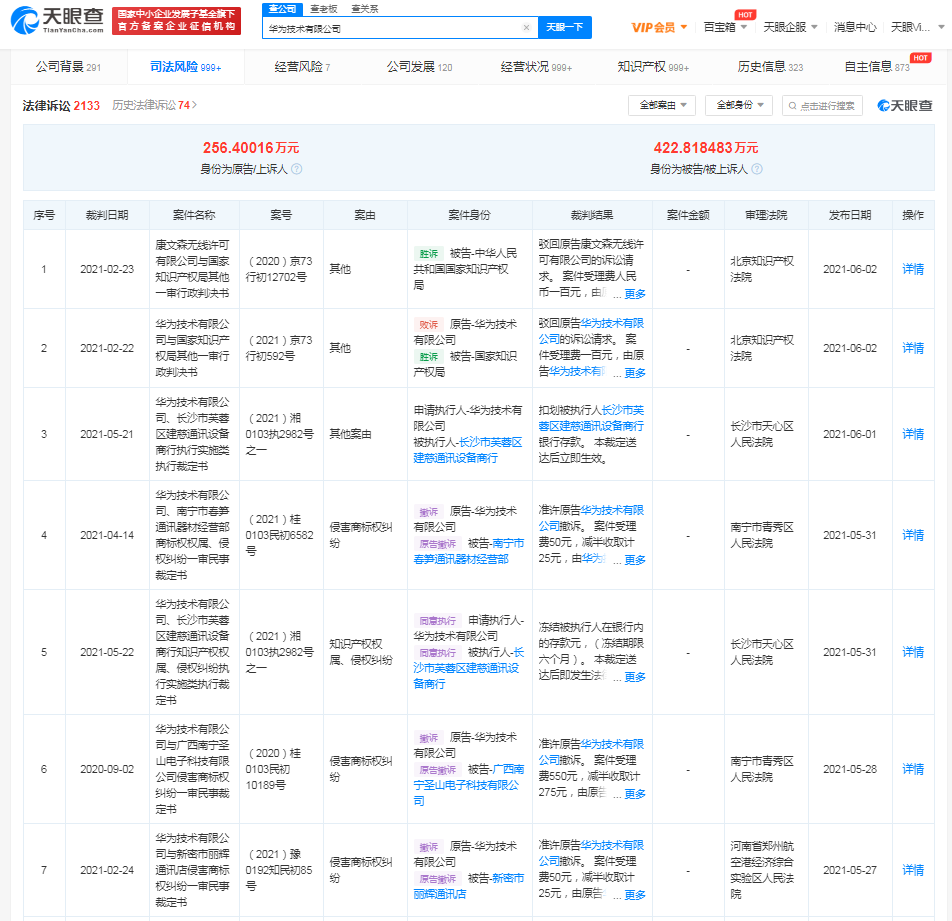值得注意的是,华为注册鸿蒙商标的过程中,由于鸿蒙名称相关商标被其他公司抢注等多种因素,导致华为鸿蒙系列商标产生数百起侵害商标权纠纷,既有“鸿蒙操作系统 HARMONY OS” 科学仪器类商标被判无效、“鸿蒙”商标被驳回复审的情形,也有华为获得 38307327 号“鸿蒙”商标转让的情况等 。2021 年 6 月,华为技术有限公司已新增多起商标侵权案件的开庭公告。