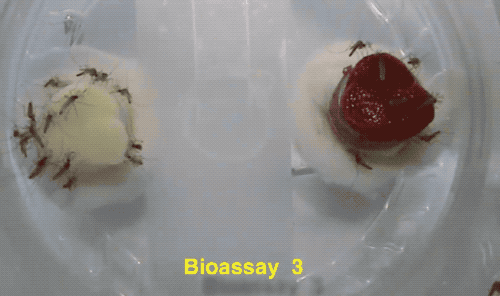他们将糖水和血水被分别放在蚊子笼两侧,公蚊子可以自由选择。结果显示,有近4成的公蚊子会去吸血。