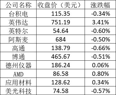 美股中的主要芯片股表现如下: