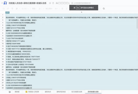 7月22日,一篇名为《一个救命文档的24小时》的文章在朋友圈刷屏。文章讲述了一个名为“待救援人员信息”的腾讯文档如何在河南暴雨灾情中发挥即时、共享的信息资源汇总功能,使众多网友通过文档信息了解到被困和求助情况,从而第一时间救援成功的感人故事,它也被网友们称为“救命文档”,是 “洪水无情、人间有爱”的真实写照。