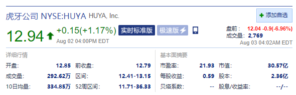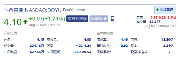 8月3日下午消息,周二热门互联网中概股盘前齐跌,网易大跌近111%,哔哩哔哩大跌超8%,虎牙斗鱼跌超8%。截至发稿,网易盘前跌10.69%,哔哩哔哩盘前跌8.01%,虎牙盘前跌6.96%,斗鱼盘前跌6.1%。