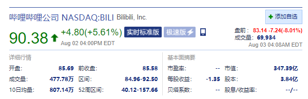 互联网中概股盘前齐跌 网易大跌近11% 哔哩哔哩跌超8%