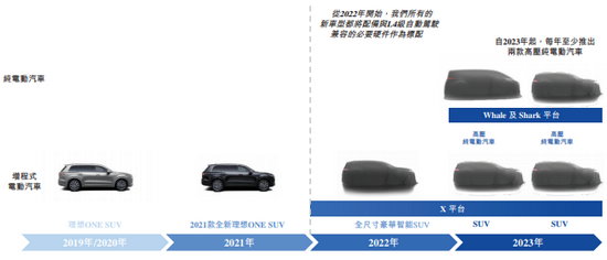 同时,根据招股书内容显示,理想汽车正在开发X平台,该平台将继承现有的理想ONE的增程式电动汽车平台,并配备了下一代增程式电动动力系统。预计理想汽车将在明年发布基于X平台打造的首款车型。该款新车尺寸将对标宝马X7和奔驰GLS。此外,基于X平台研发的另外两款电动SUV,将在2023年推出。