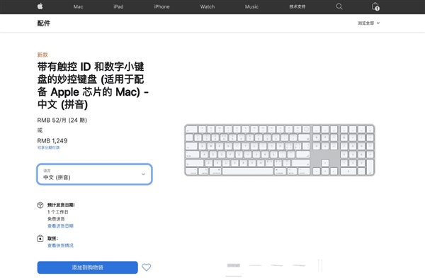 今天凌晨,苹果为Apple Store(官网 、Apple Store 应用程序)等突然进入维护状态,界面进行了一些调整,并且在首页新增了“商店”单独专区。在更新之前,苹果还上架了最新产品——新款妙控键盘。其中包括,带有触控 ID 的妙控键盘(适用于配备 Apple 芯片的 Mac), 售价 1049 元;带有触控 ID 和数字小键盘的妙控键盘(适用于配备 Apple 芯片的 Mac), 售价 1249 元。