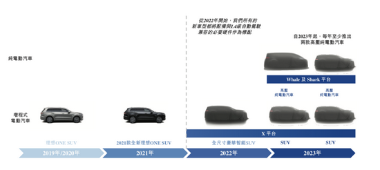 首先,理想汽车正在开发X平台,其继承了理想ONE现有的增程式电动汽车平台,并配备了下一代增程式电动动力系统,并计划于2022年推出X平台上的首款产品——全尺寸豪华增程式电动SUV,并于2023年在X平台上推出另外两款 SUV。