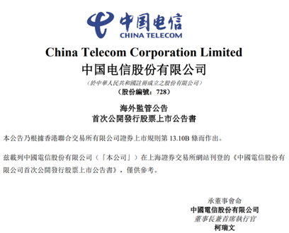 8月18日晚间,中国电信公告称,公司股票将于2021年8月20日,正式登陆上海证券交易所,发行价格为4.53元/股。当晚,中国移动在港交所发布公告称,公司已就人民币股份发行向中国证券监督管理委员会提交包括首次公开发行人民币普通股(A股)股票招股说明书(申报稿)在内的申请材料,并于近日收到中国证监会对公司提交的人民币股份发行申请出具的受理单。