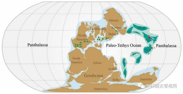 瓣齿鲨属在二叠纪乌拉尔期的古地理分布图(林翔鸿提供)