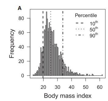 注:BMI=体重÷身高2,是国际上衡量人体胖瘦程度以及是否健康的一个常用指标。同样身高下,BMI值越高的人体重越大,通常情况下也越胖(并不绝对,因为当一些人的肌肉占比较大时,体重也会相应更高)。