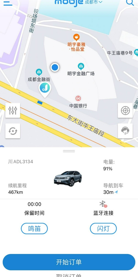 但不死心的我,一边开启第三轮找车,一边通过App查看附近其他可用车辆。虽然是靠近太古里的核心城区,但依旧很难找到ID.4 CROZZ的车。