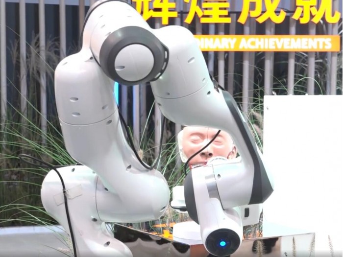 9月4日消息,在服贸会国家会议中心主会场的中国服务贸易发展成就展上,全球首台全自动鼻咽拭子采样机器人亮相(视频)。该款机器人实现了抓取、标定、采集和消杀全自动工作流程,可规范样本采集,降低采样成本,减少医护人员高风险暴露,节约医疗资源。