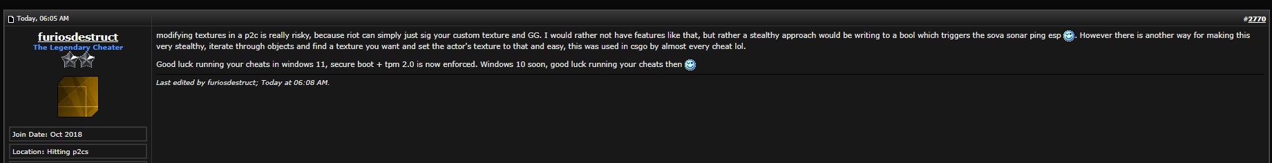 比如 Riot Games 旗下的《Valorant》射击游戏、或者被版权方用于实施某种数字版权保护(DRM)来挫败,只是目前尚不清楚该要求是否适用于 Windows 11(甚至 Windows 10)。