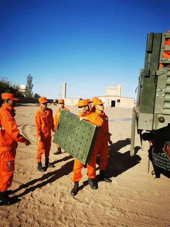 东风着陆场区域辽阔,人烟稀少,地形复杂,沙丘起伏落差大,极易遮挡视线,为搜索处置和运输提高了难度,但我们的搜救队员们从思想、身体素质、装备训练、后勤保障等各个方面已经做好了准备。